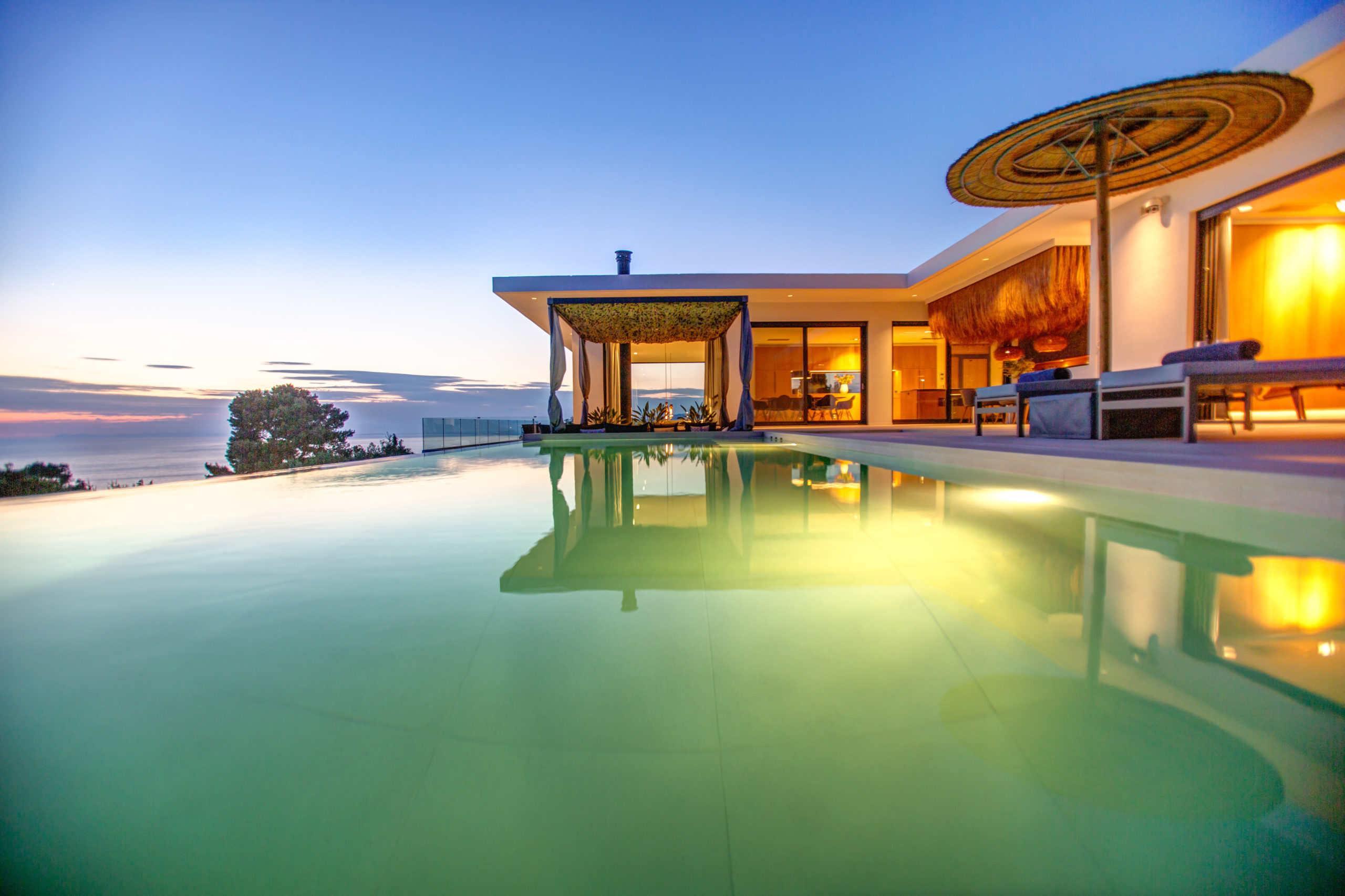 Auf 250 m² erwarten Sie vier Schlafzimmer mit Bad ensuite, ein großzügiges Wohnzimmer und eine offene Wohnküche. Draußen lädt eine 170 m² große Terrasse mit beheiztem Infinity-Pool, großzügigem Hottub und Sauna zur Entspannung ein. Moderne Annehmlichkeiten wie Klimaanlage, Fußbodenheizung und WLAN inklusive.