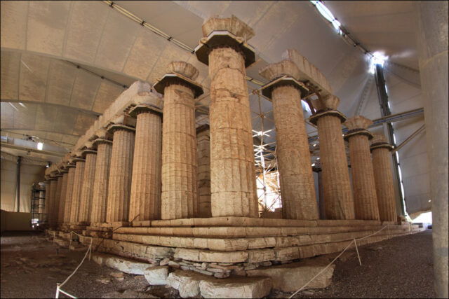 In der wilden Bergwelt Arkadiens, in einer Höhe von 1.130 Metern, wurde um 450 vor Christus der prächtige Tempel errichtet. Die von der Pest verschonten Bewohner des Ortes Phigaleia glaubten den Heilgott Apollon Epikoirios dafür verantwortlich. Ihm zu Ehren errichteten sie einen Tempel, der heute zum Weltkulturerbe zählt. Vermutlich ist es gerade seiner abgeschiedenen Lage am Rande eines tiefen Taleinschnittes zu verdanken, dass von ihm mehr als von den meisten anderen Tempeln Griechenlands erhalten blieb.